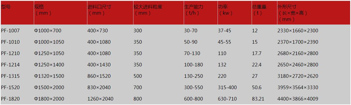 反擊式破碎機參數
