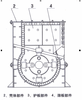 箱式破碎機采用新型高耐磨材料錘頭(每付錘頭可破碎石料3—4萬噸,)、篦板及反擊板、錘頭使用壽命長。