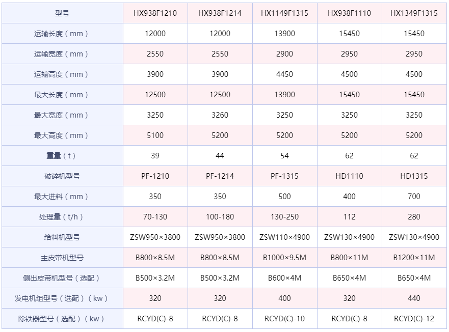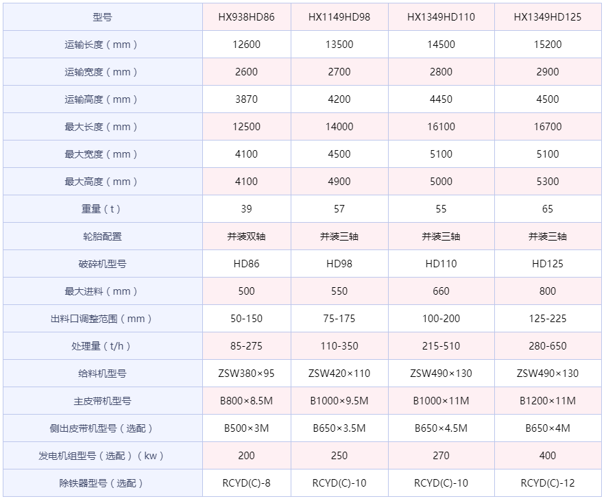 顎式移動(dòng)破碎站參數(shù)參數(shù):